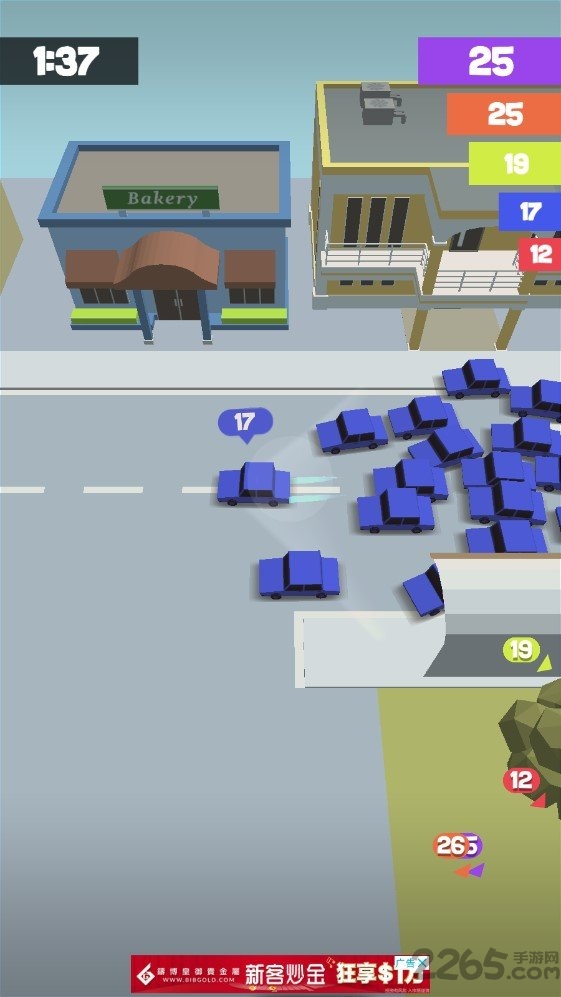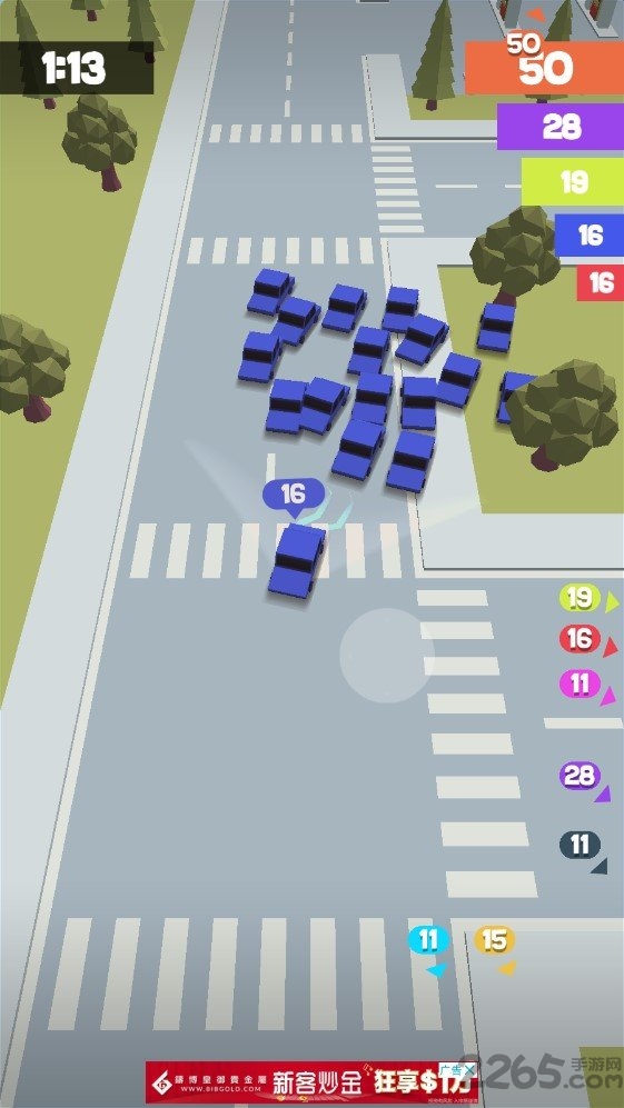 2、收集路边的小车或者截断其他玩家的尾部来培养自己,打造一个超级无敌的车队。
